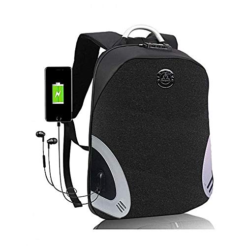 Made of waterproof polyester and PU with an exclusive anti-theft design, it has an inverted opening, that is, the main zip that opens the entire backpack is on the back and no one will be able to open it if it is on the owner’s back. Comprises one large packing compartment, separate laptop compartment, tablet holder, and front pocket organizer for business ,college, school and daily use ,the multiple partitions of this backpack allow you to stay well-organized throughout your travels, with the added benefit of a small pocket in the shoulder strap for easy storage of cards, keys, cash. The travel backpack comes with combination lock with durable zippers to detour theft. Also a hidden theft proof pocket on the back designed to protect your personal valuables such as card and wallet. Has an external USB interface with a built-in charging cable , the USB port on the outside of the bag, plug into a power bank or your laptop stowed safely inside, and charge your phone, iPod, iPad, camera etc .Modern, stylish, Quality cool safe antitheft bag, with an elegant design for your travel.